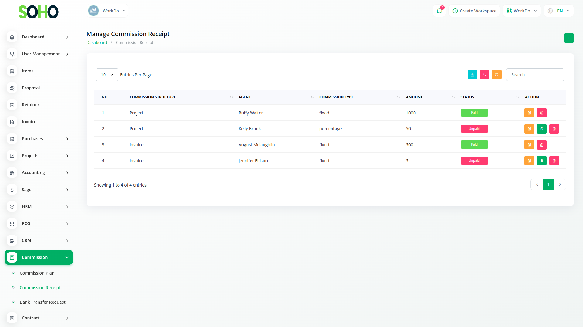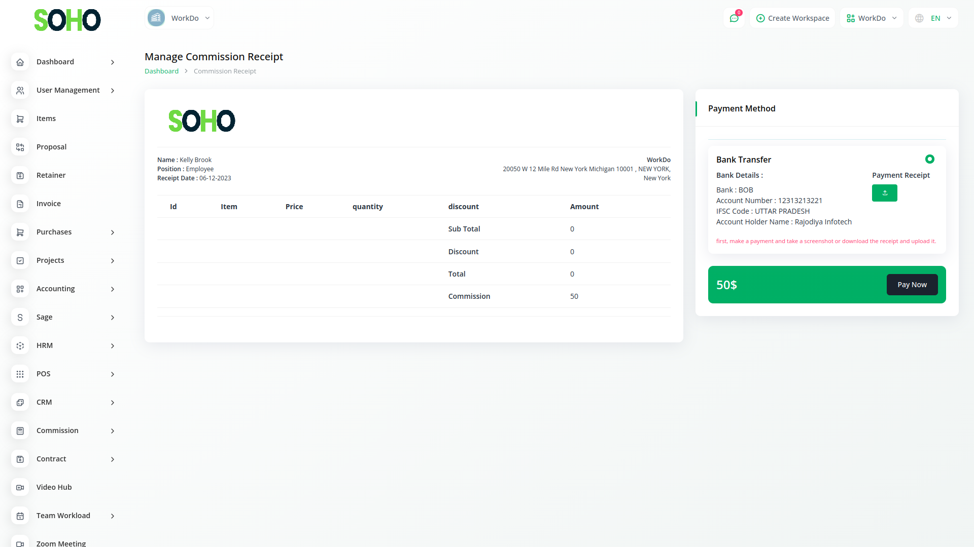 In Commission Module, Commission calculation is about Invoice, Sales Invoice, Project , project and task, agent will get his Commission when payment is made, bank transfer payment in Commission module. When the payment is made, the bank shows its entry in the transfer request so that it knows how much commission is paid.