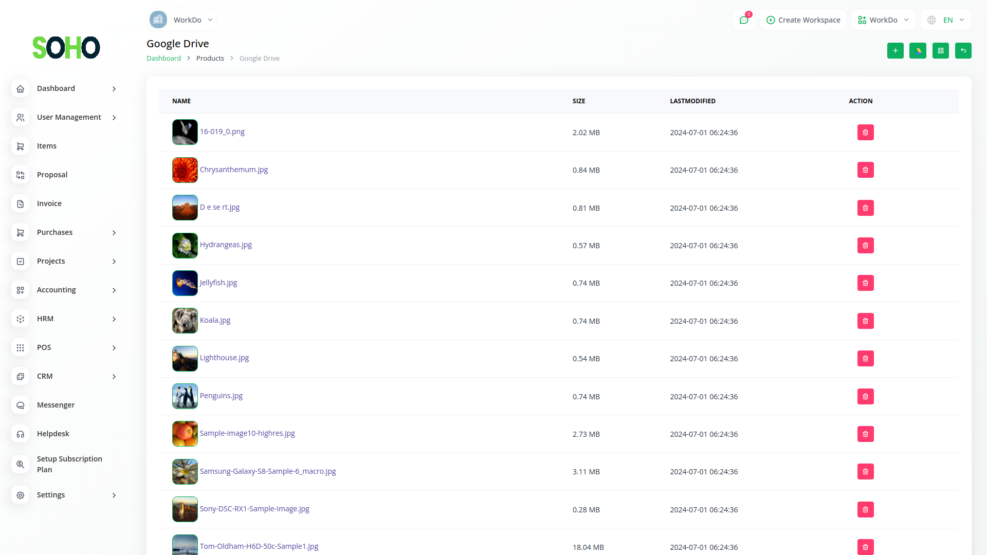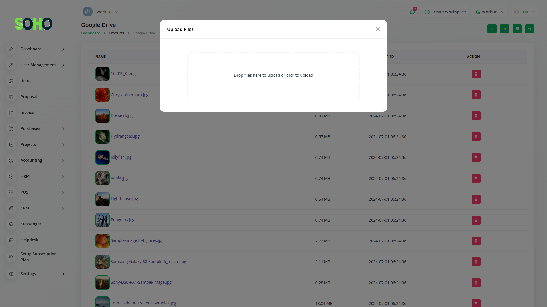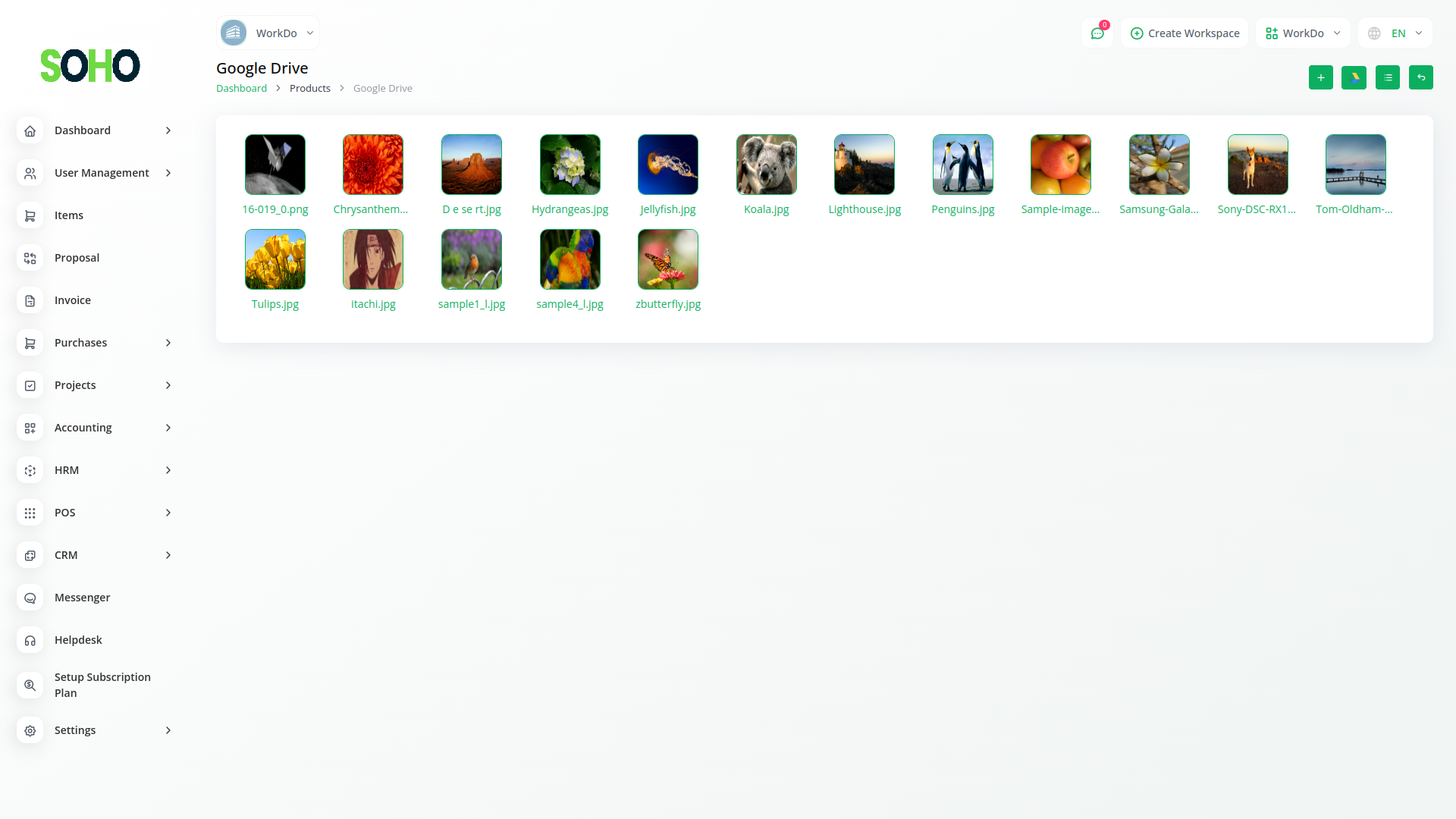 Introducing the Google Drive Module Grid View – a dynamic visual hub where your files and images come to life. With seamless integration between Workdo-SOHO and Google Drive, this innovative feature showcases your documents in a stunning grid layout. Effortlessly browse through your Google Drive files and images right from within our platform, providing an immersive and intuitive experience. Say goodbye to clutter and confusion – our grid view offers clarity at a glance, allowing you to easily locate and access the files that matter most.