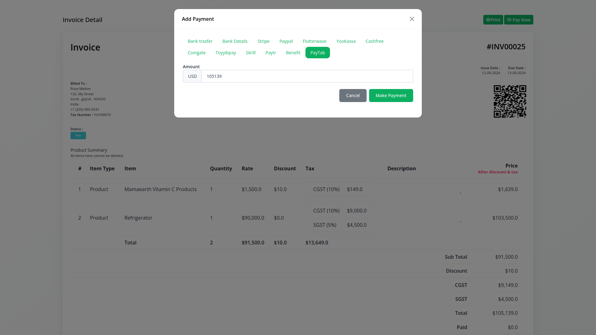 Streamline your payment process with electronic invoices (retainer and sales) generation, plan payment, secure delivery, and easy payment initiation and authorization through the PhonePe Payment platform.