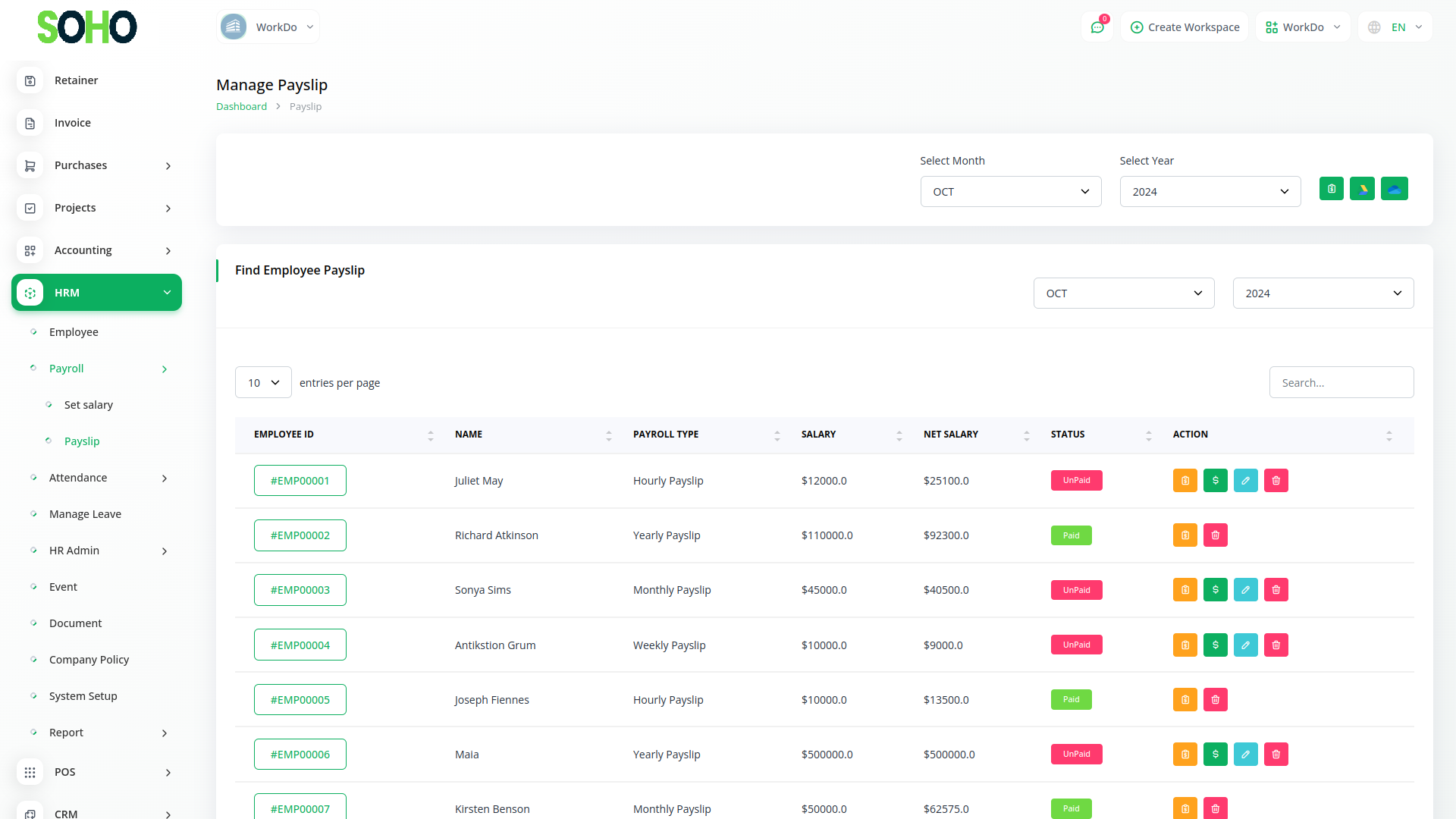 With SOHO ERP HRM, you can manage key employee matters, recruit new candidates, boost employee productivity, and pay your employees for their hard work - Without stress, all from one place. Whether youre a consultant, small business owner, or large corporation - the system is designed for everyone.