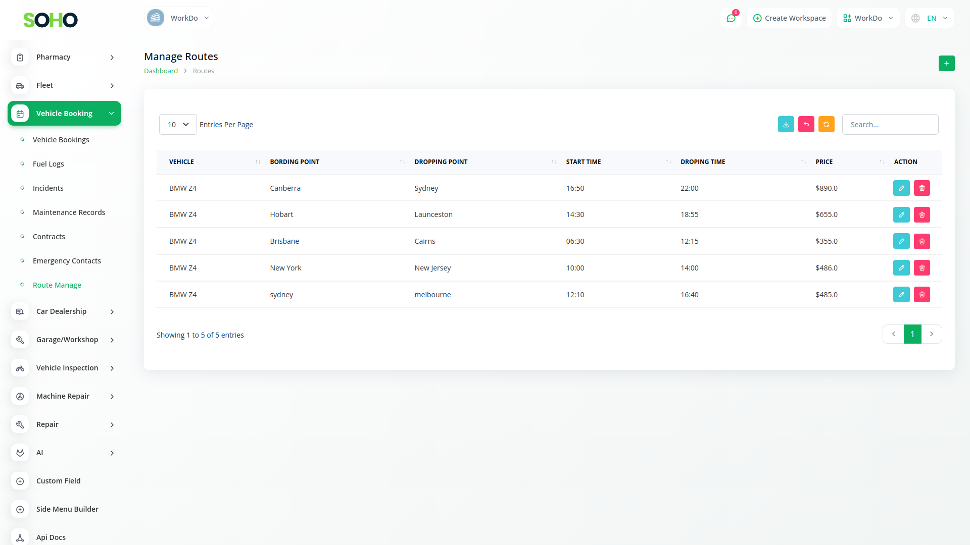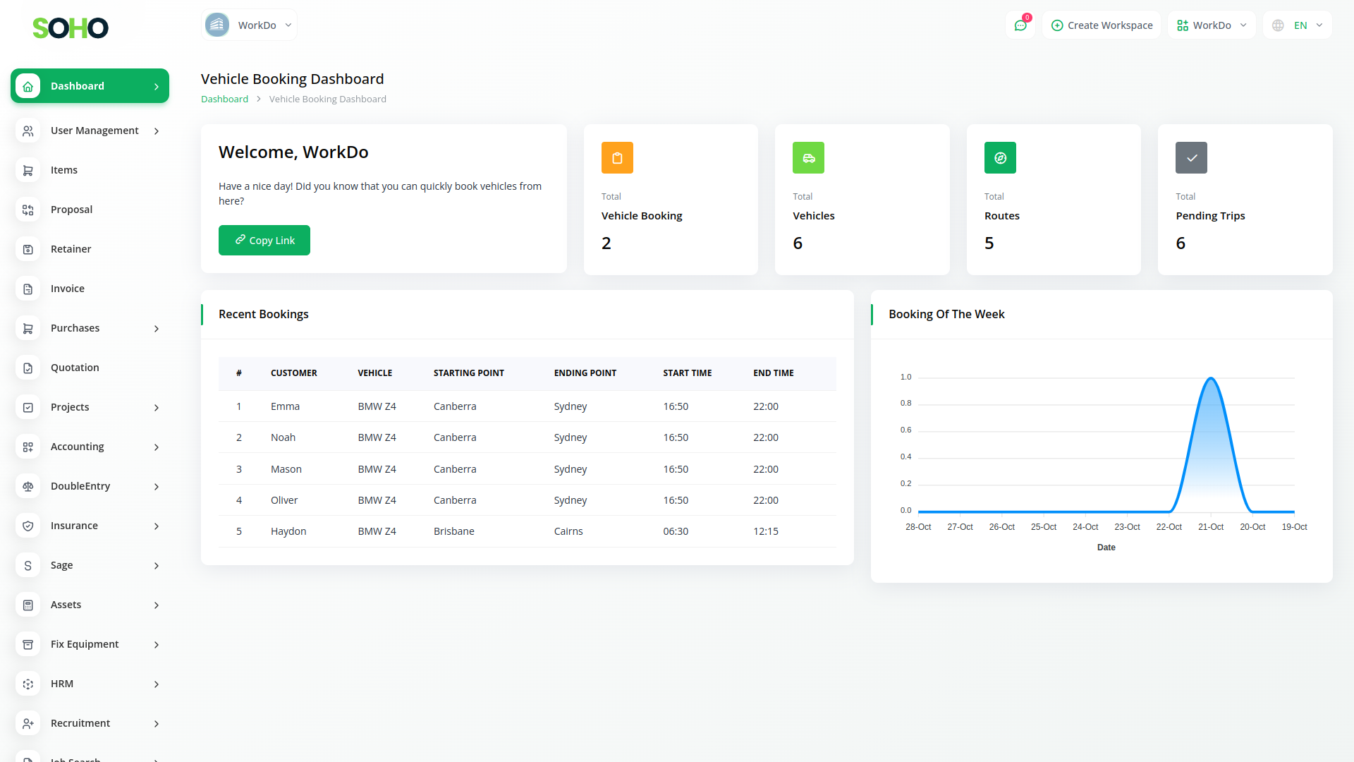 SOHO Vehicle Management module offers a streamlined approach to fleet operations. Track, maintain, and optimize your vehicle fleet effortlessly with centralized data management and advanced analytics. Drive efficiency and stay competitive in today's landscape with SOHO.
