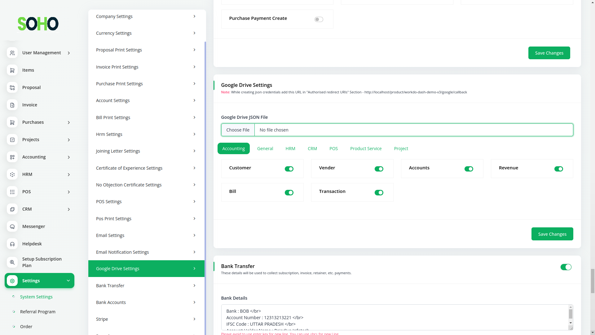 Streamline your tasks and boost productivity by seamlessly integrating Google Drive into Workdo-SOHO. Upload your Google Drive credential JSON, choose submodules to enable, and enjoy direct access to your documents and files. Say goodbye to unnecessary app switching and cumbersome downloads – effortlessly edit and view various file types right within the Workdo-SOHO interface.
