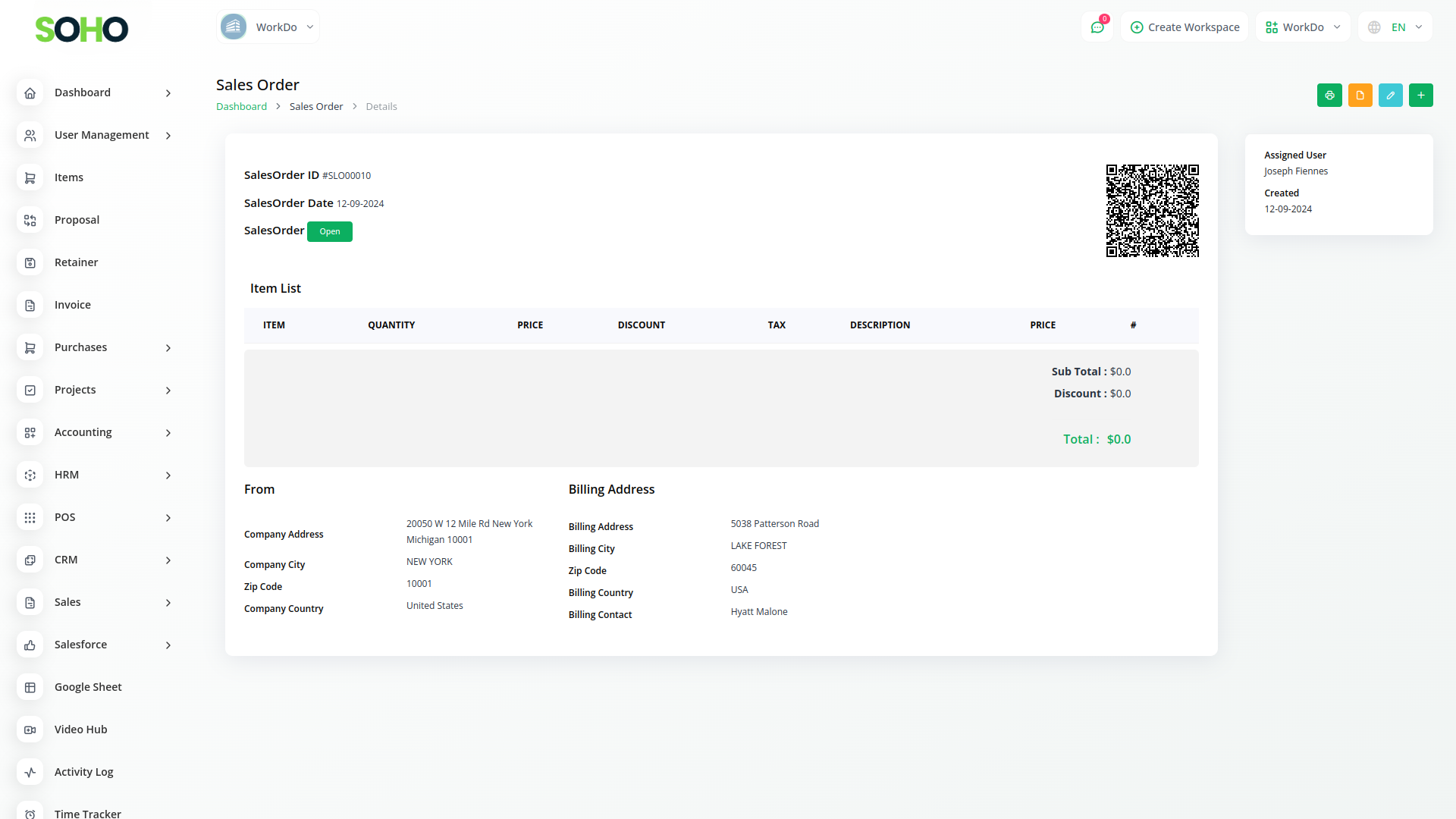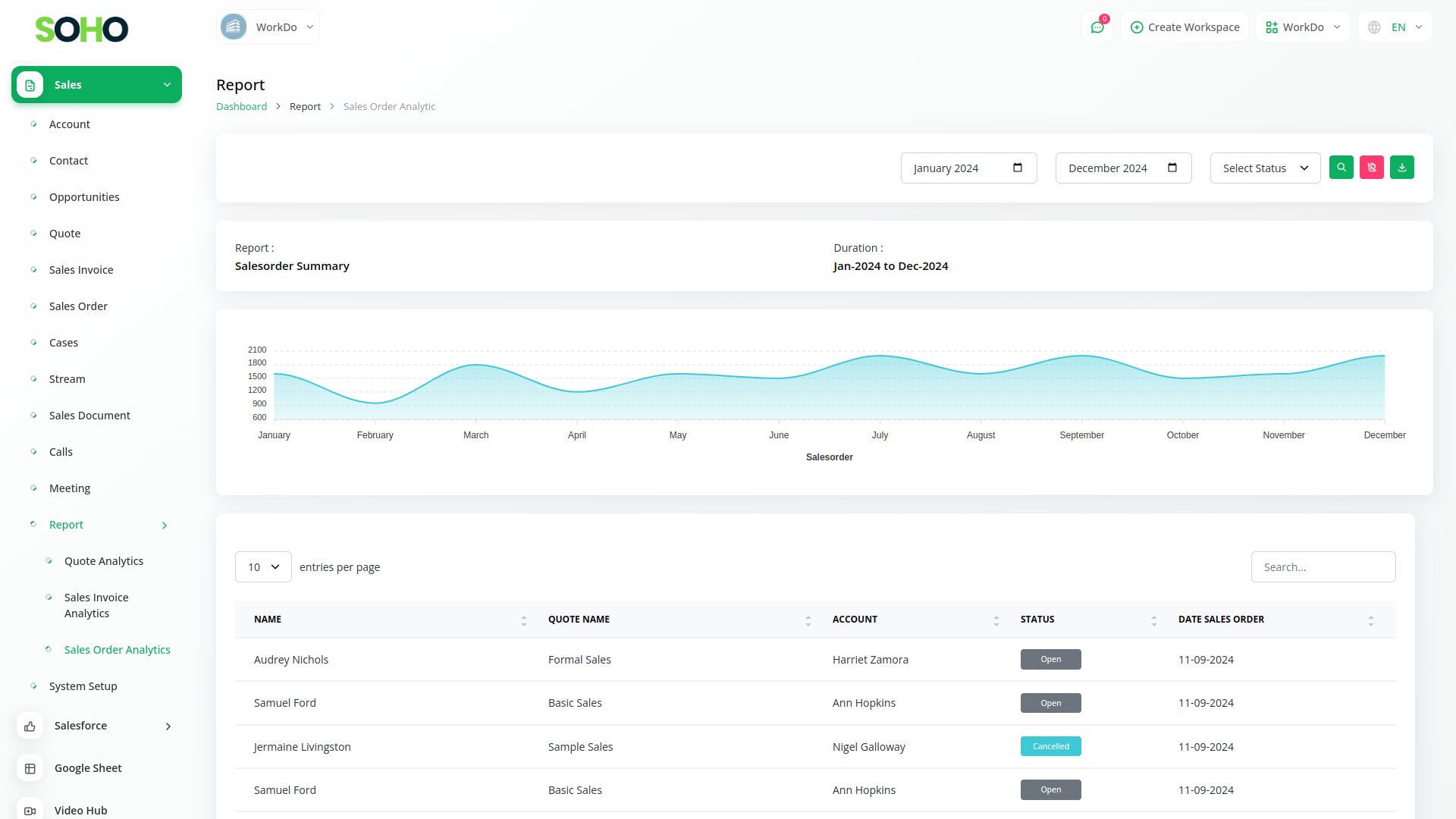 Get tailored analytics and reports sent to you automatically. Get an in-depth analysis of sales orders, sales invoices, and quotes. Easily filter through these reports by setting various parameters. Get status, amount, assigned users, created date, and other important information in a single list. Easily print sales orders, and invoices and add new items to existing orders.