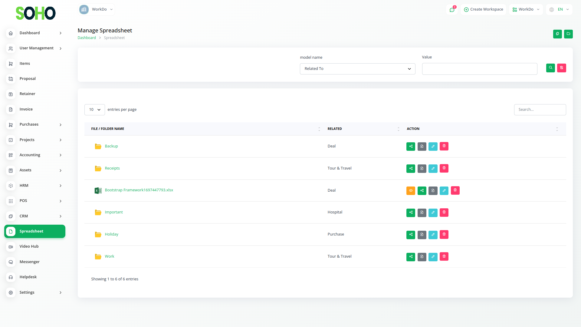 You can create subfolders within folders and share them with users. Also associate various modules like projects, leads, deals, contracts, etc., with these folders to organize related data. Additionally, you can share the folder directly within these modules for easy access, streamlining data management and collaboration.
